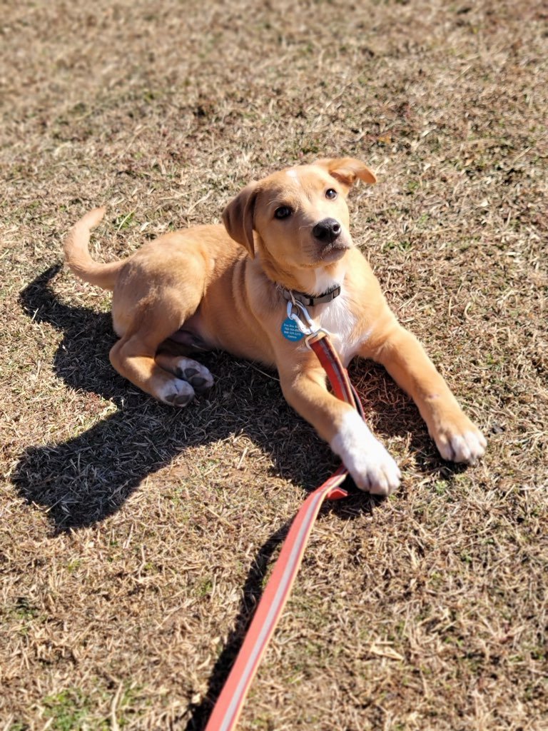 My name is Archer. Yes, I should be a poster puppy! I am adorable! I am about 3.5 months and 24 lbs. I should be a nice medium sized guy when full grown. The rescue thinks I am a mix of lab and collie and maybe even some golden! I am great with everyone.... kids of all ages, dogs of all types. I have not been around a cat but I am sure I would just want to play and be a little interested! I am super smart and my foster mom is the best. I am almost totally housebroken, I am crate trained and I know some basic commands. She works with me every day. I love to go on walks, drives, stores (including all pet stores where I have been known to try to shoplift a toy or two and Lowe's), and meet new people along the way. Yes, I seem perfect and I might be close but I still need a family willing to do deal with puppy stuff - chewing, entertaining, adjusting to a new bathroom schedule etc. I have a great base down already!