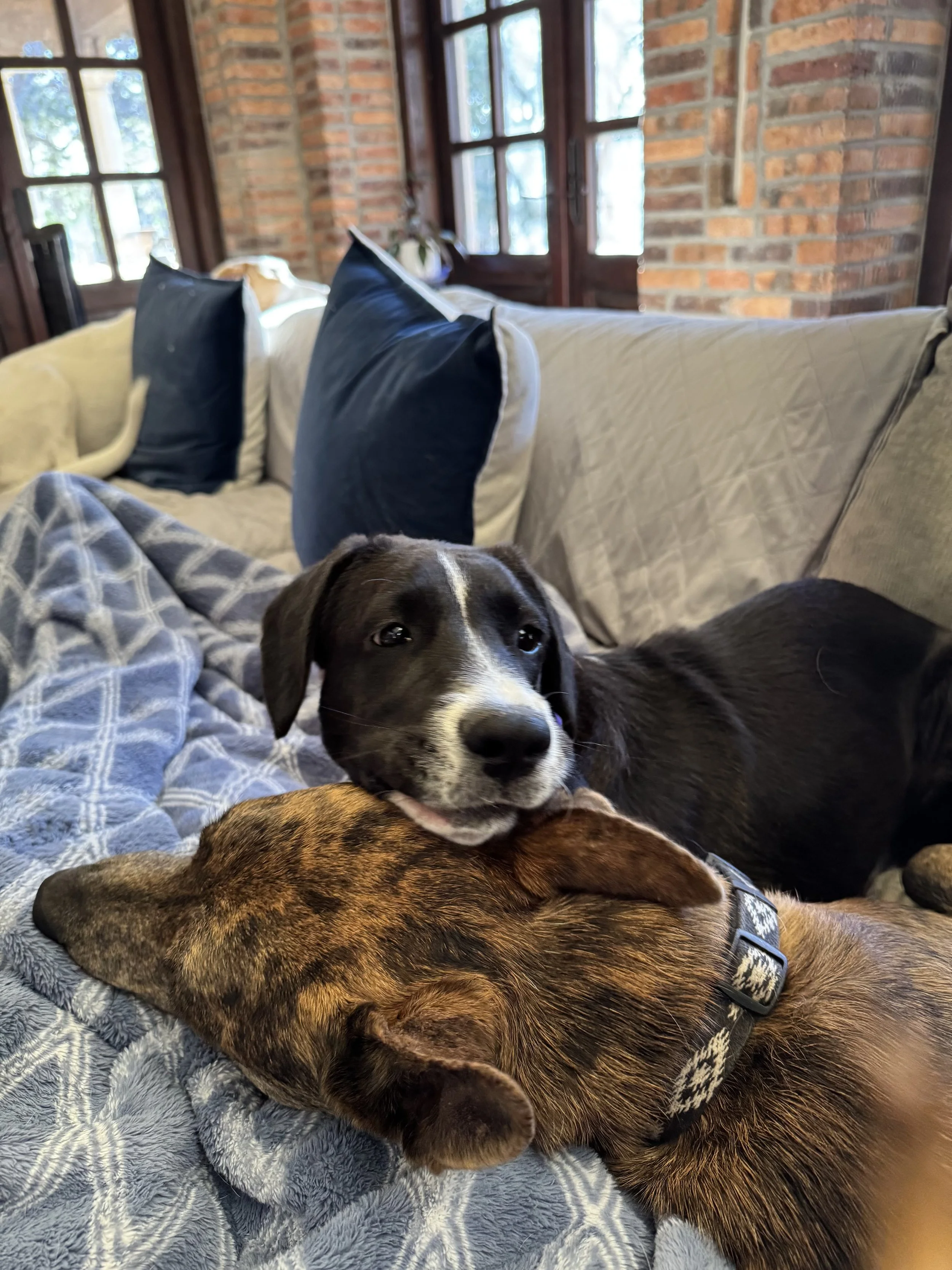 My name is Axle. However, my foster parents lovingly call me "Nico." We feel like Axle might be a little too hard core for my personality. I am not hard core at all. I am about 7 to 8 months and 45 lbs. I was really skinny when I went into rescue. Now I am filling out like a champ! I am a smart but timid boy; at least timid at first. I absolutely love my dog friends and will be looking for one or two canine friends in my future forever home. I am not picky about size or gender. I benefit from watching, following and learning from them. They provide me with a little more confidence while I learn what the world is! Don't worry, I love my humans too when I get to know and trust them. My foster parents are very special to me! I don't have a mean bone in my hound/collie body.