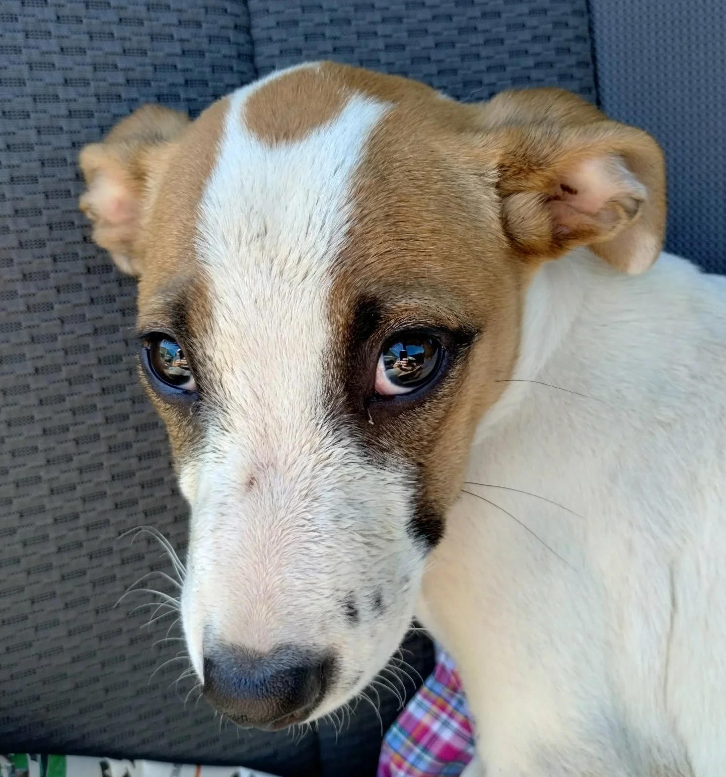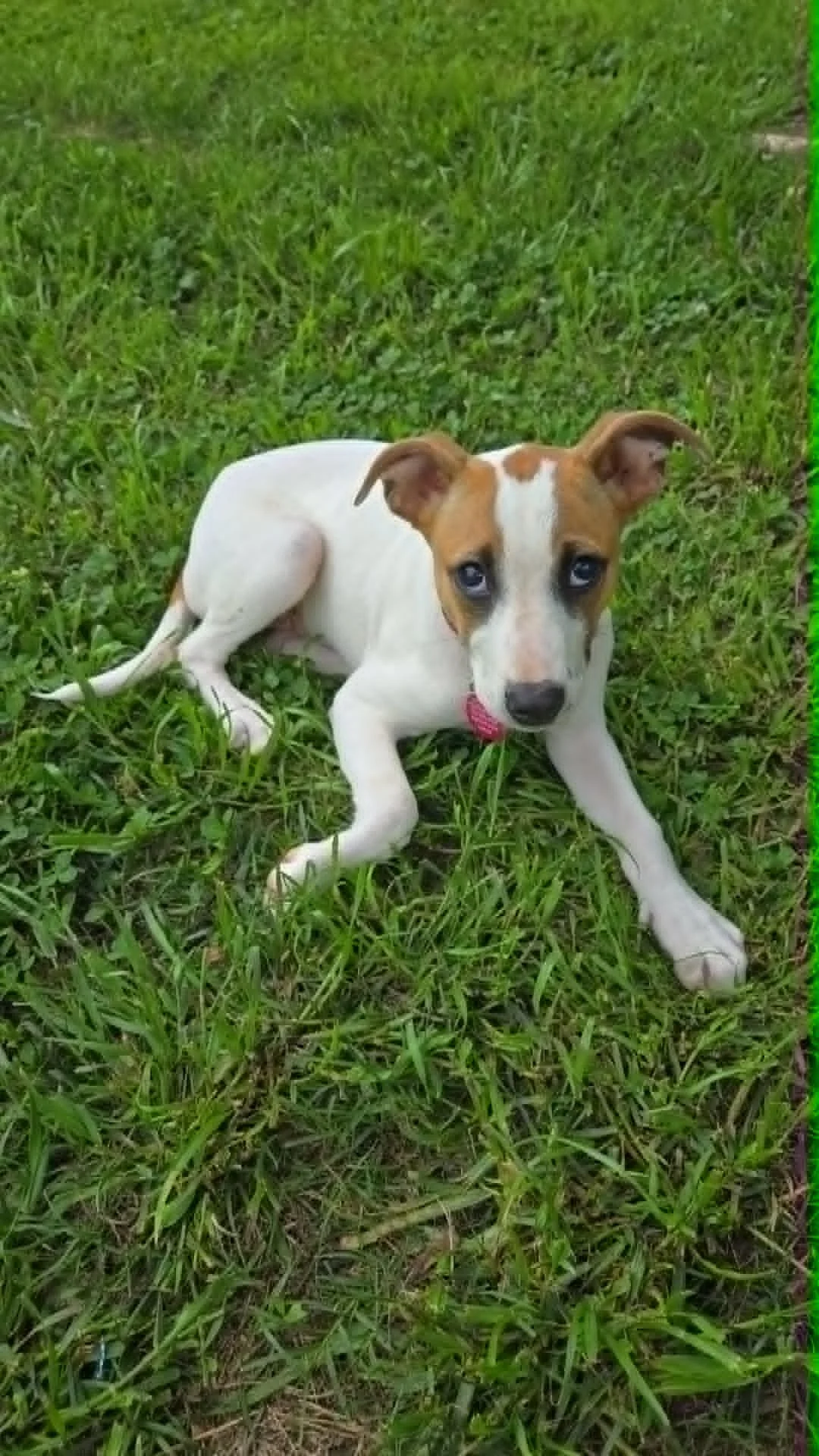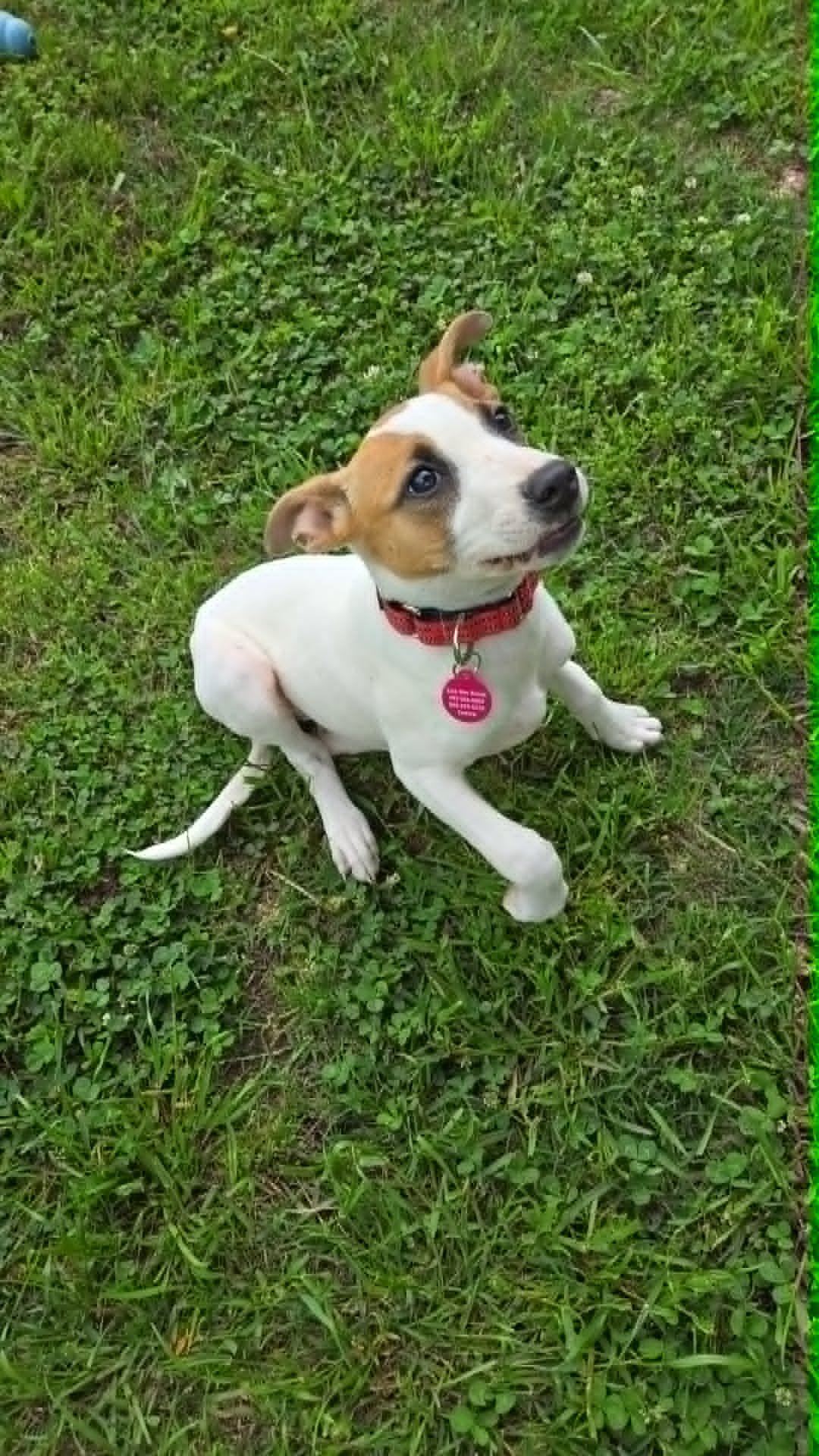 My name is Maisy. I am a tiny girl at 13 lbs and about 14 weeks. We believe I am a Jack Russell Terrier mix with a few other things to note. I was so lucky. A really nice man found me wandering all alone and took me in. He got in touch with the right people and now I am in a very loving foster home. I am a sweet little lady. I am spunky and fun and can be just a little shy with new noises. I may have never been in a real home because the vacuum is a mystery to me. I also don't understand the dishwasher, washer or dryer! I just adore the three other big dogs in my home. I cuddle with them all the time, play and follow them and really like their company. They might not always love me pestering them but they are very tolerant. I am just too cute to be mad at! I am doing really well with my housebreaking. The big dogs help me learn. I sleep soundly and comfortably in my crate at night. I am fun loving puppy that will be smaller in size, 30 max. I would love to live with another dog friend and have people to cuddle with. Respectful kids would be just fine for me, I just haven't been around any of those tiny humans.