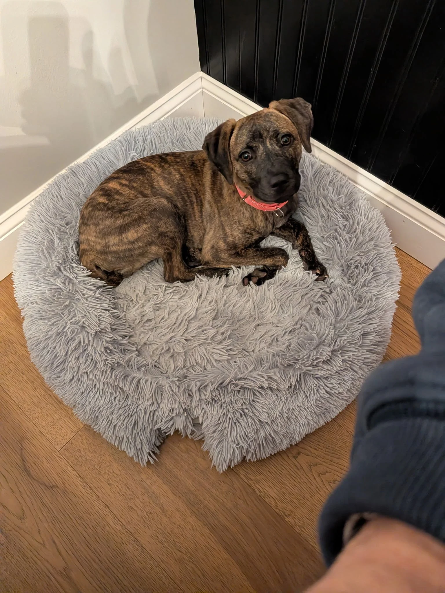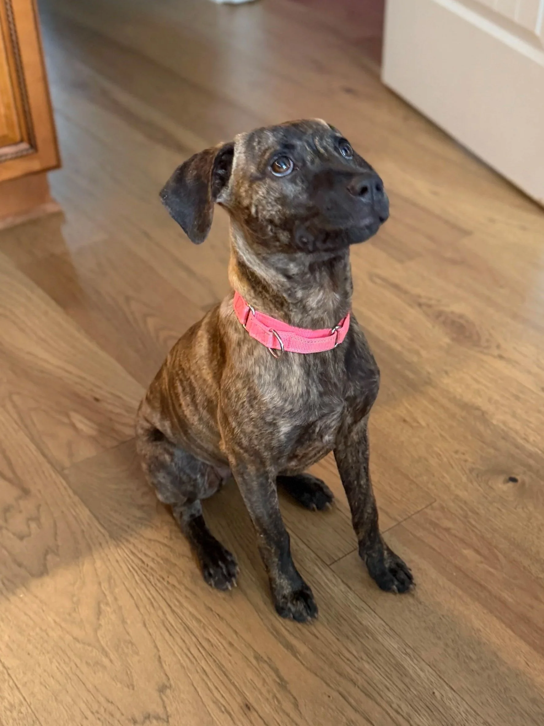 • Adventure & Naptime: She’s a Plott Hound mix, so she’s got a great nose for adventure, but she’s just as happy curling up on a soft blanket once she's tuckered out.