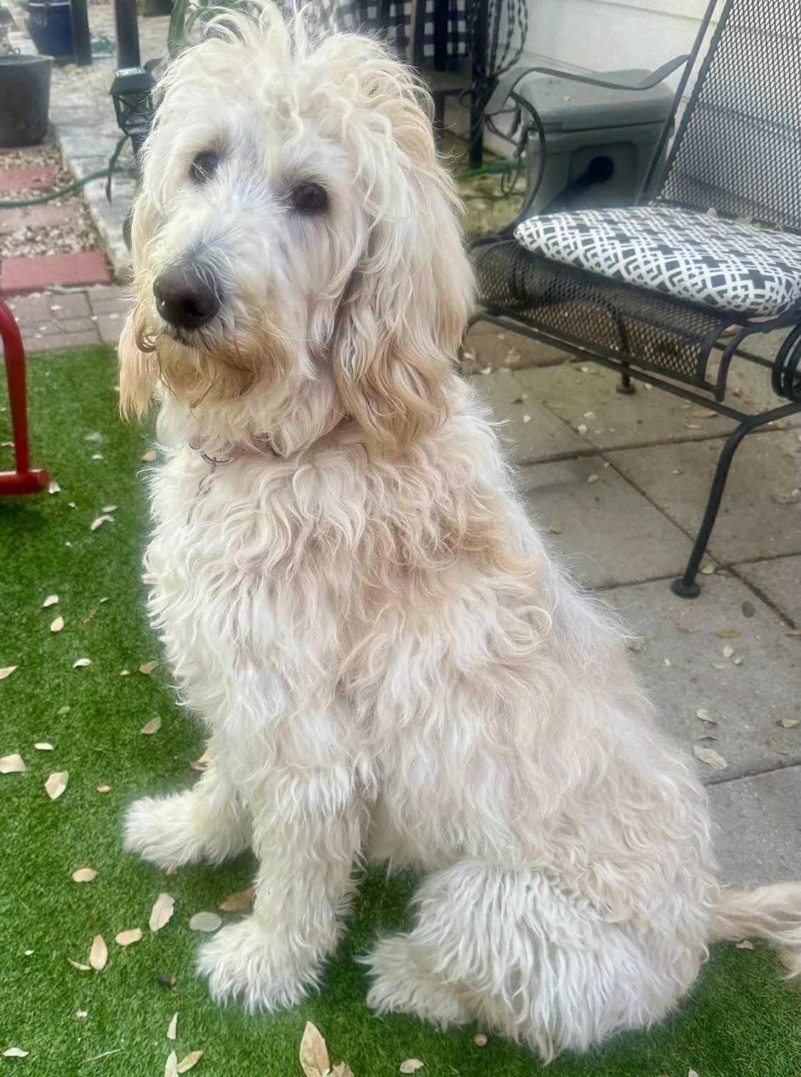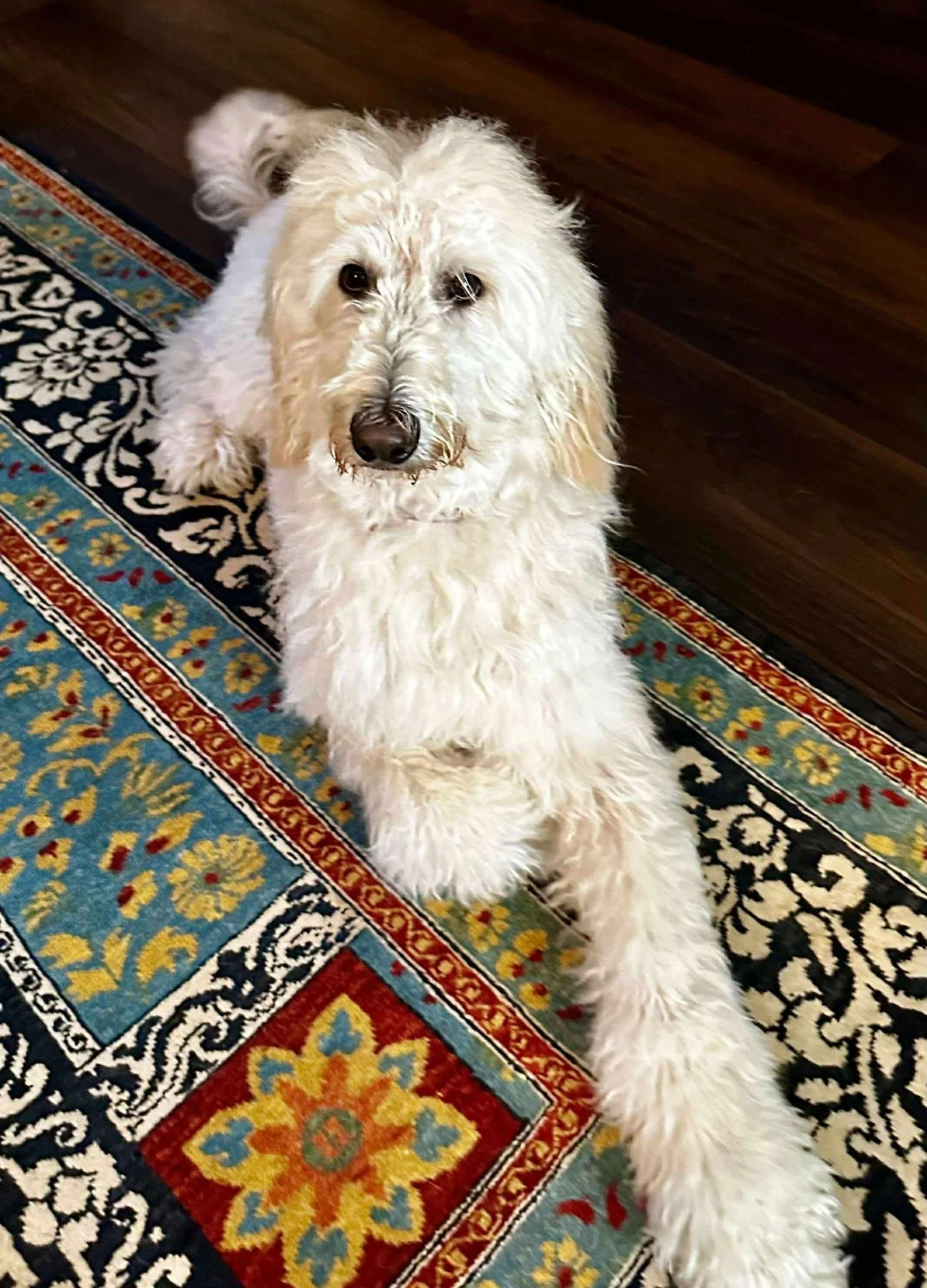 Phoebe is a Goldendoodle that's just over 5 1/2 years old and weighs about 55 pounds & will more than likely stay the same size!