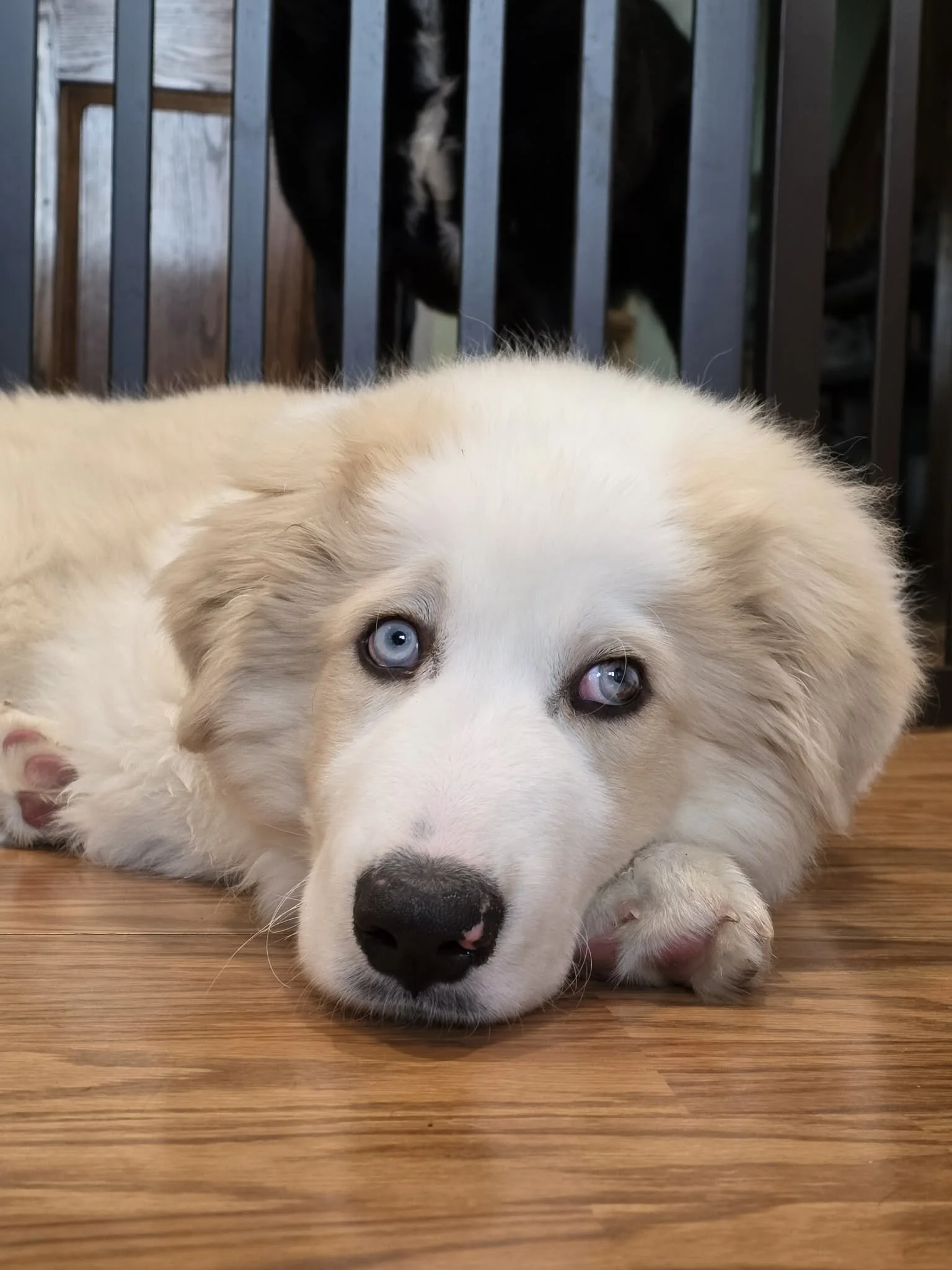 My name is Quinn! I am a a male Great Pyrenees mix (clearly!). My wonderful mama was a Pyrenees with a touch of Shepherd. I am about 4.5 months and a tall hunk! I am already about 35 lbs. We suspect I will at least double in weight. I am a very friendly and loving pup. I am also super super soft! I have met a ton of people already in my rescue journey. I am perfectly well behaved with kids, adults and other dogs. I will have zero issue with a cat. I am very much a Pyr. I have an independent streak, can be a little aloof at times but also gentle and sweet. I am medium energy and as I grow, I might be a bit on the lazier side! I can walk on leash just fine - I need some training in that regard but I don't mind going on a stroll! I am crate trained. Again, like many of my breed, I am not a HUGE fan of it but I can use it and I should so I don't get into puppy trouble! I require a single family home and a fenced in yard. I am located in NJ and would love to meet you!