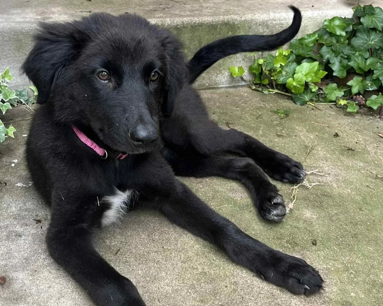 Hello, I’m Raven. I’m about 4 months old, 15 pounds, and my foster family says I’m the sweetest little girl you could meet. I have a softer, gentler personality than my sister, Olive - I love people and want to be near them, but I’m happy to just sit close by and watch what’s going on rather than always being in the spotlight.