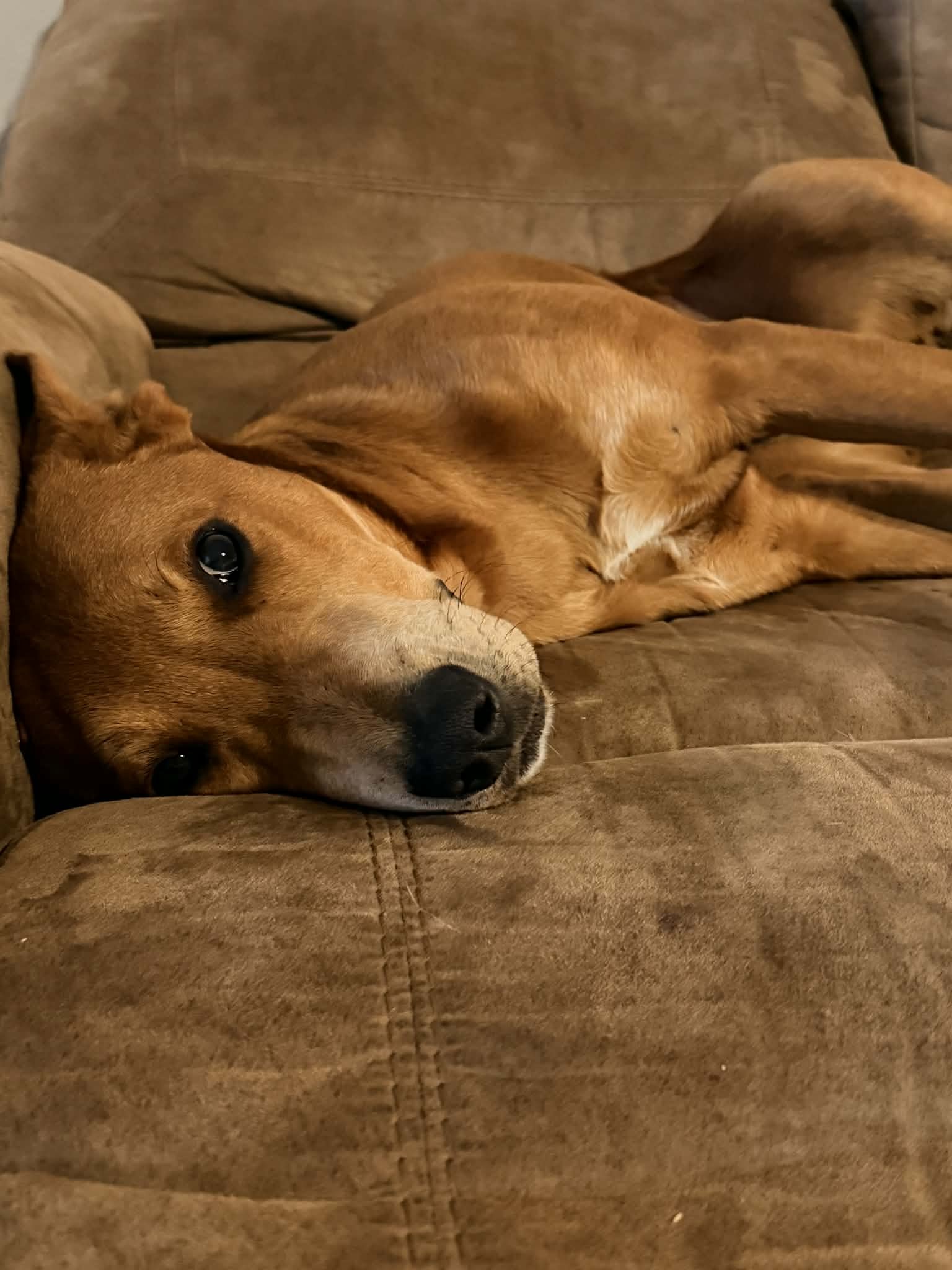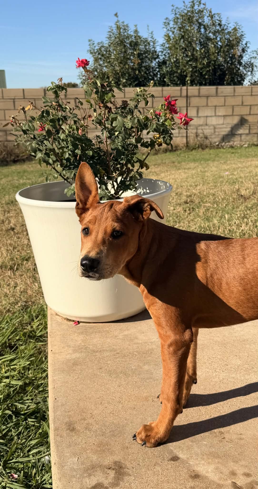 My name is Red. Fitting right? I am 8ish months and 42 lbs. I am a mix of who knows what but that may include Ridgeback, Carolina dog, Cur and Terrier. I won't be very big and seem to have just about reached my size potential. I am housebroken and crate trained. I love people and I am great with young kids. I live with two young humans under 6 in my foster home. I love sitting next to them on the couch and these days, blankets are welcome. I play nicely with my brother and the other dog in the home. I also walk well on leash for not having a lot of practice. I am a relatively active boy with a mild temperament. I am young and ready to try out some adventures. Most importantly, I am a master cuddler. I am a loyal companion and proven to be a great family dog. Here is a link to the application if you are interested in me!