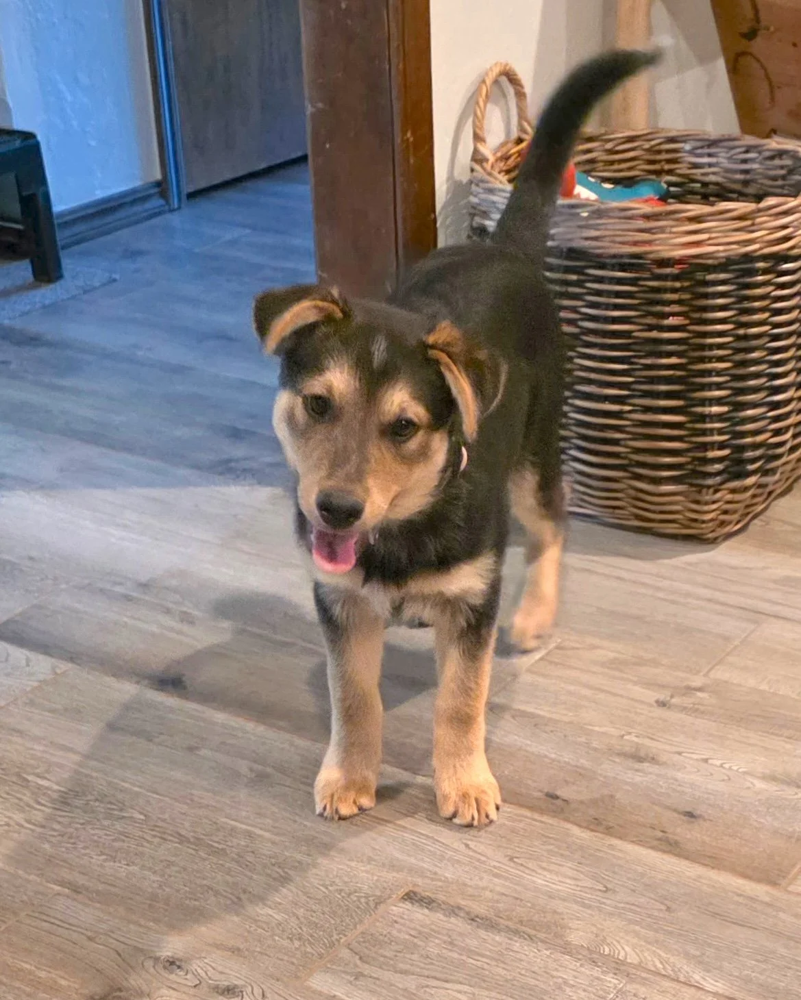 My name is Rosie! I am a 14 to 18 week little lady. I am 20 lbs and a ball of cuteness. Obviously, my breed make-up consists of some German shepherd. But, I have a few other things in me we believe - Samoyed? Heeler? Maybe a touch of Husky? Chow? Lab? Our guess is I won't be huge given my weight on this age; I will be a medium sized girl full grown. I am a smart girl - only ONE accident so far. We aren't sure how that is possible for puppies, but some just get it. I am crate-trained and sleep through the night too. I love to play with my dog friends. I also love to play with the resident cat. She likes it too. If I go to a home with a resident cat, they probably have to be tolerant of my puppy antics. I am good with kid and have spent some time with a toddler. I love toys and love to cuddle. I would be a great match for a person or family that's ready for a young dog that they can raise, train and influence. I need a relatively active family and a fenced in yard would be fabulous. I could absolutely live with a dog friend in my home - I love them; but if I am your one and only pup, I am sure I would soak up all the attention too.