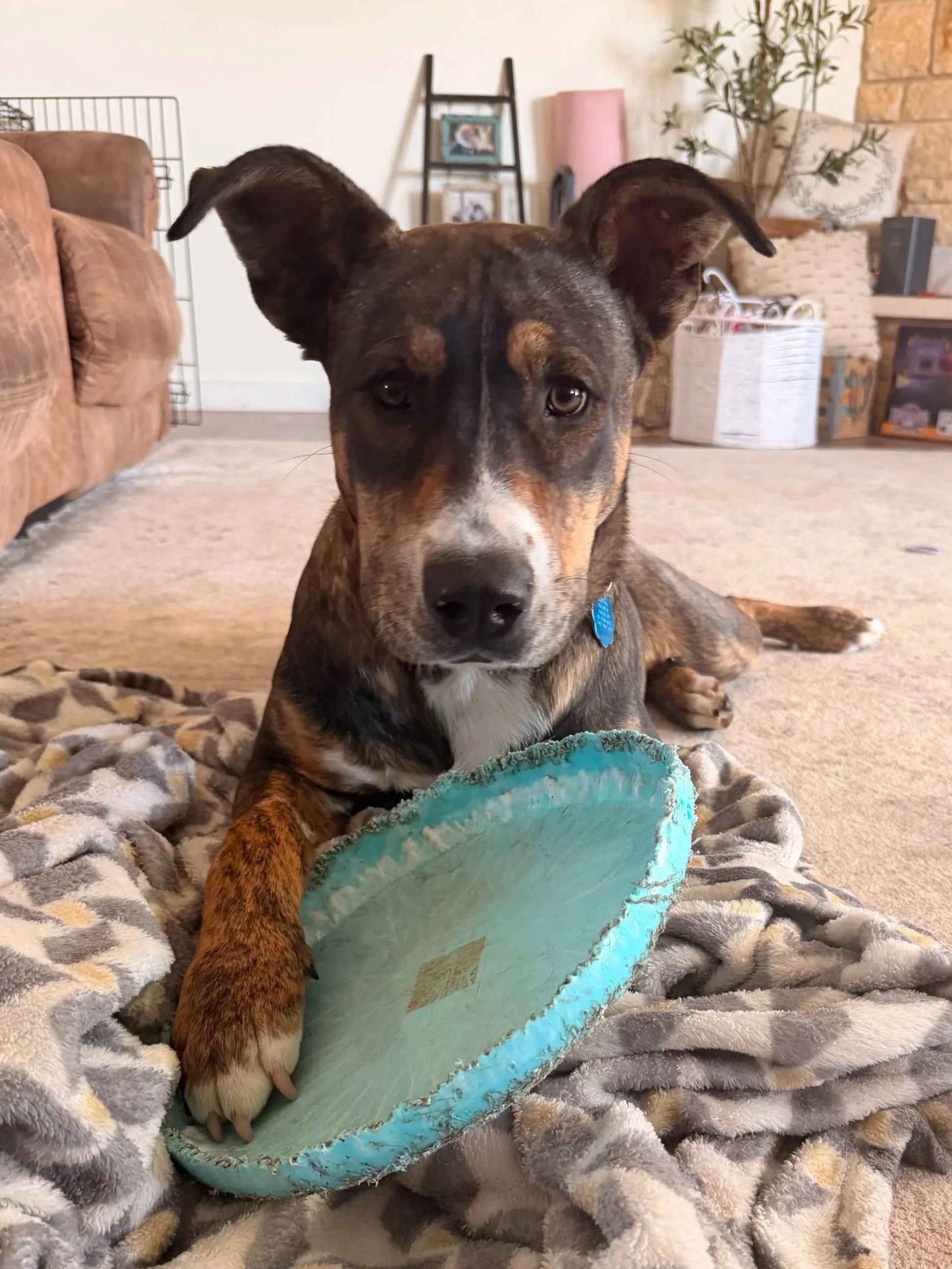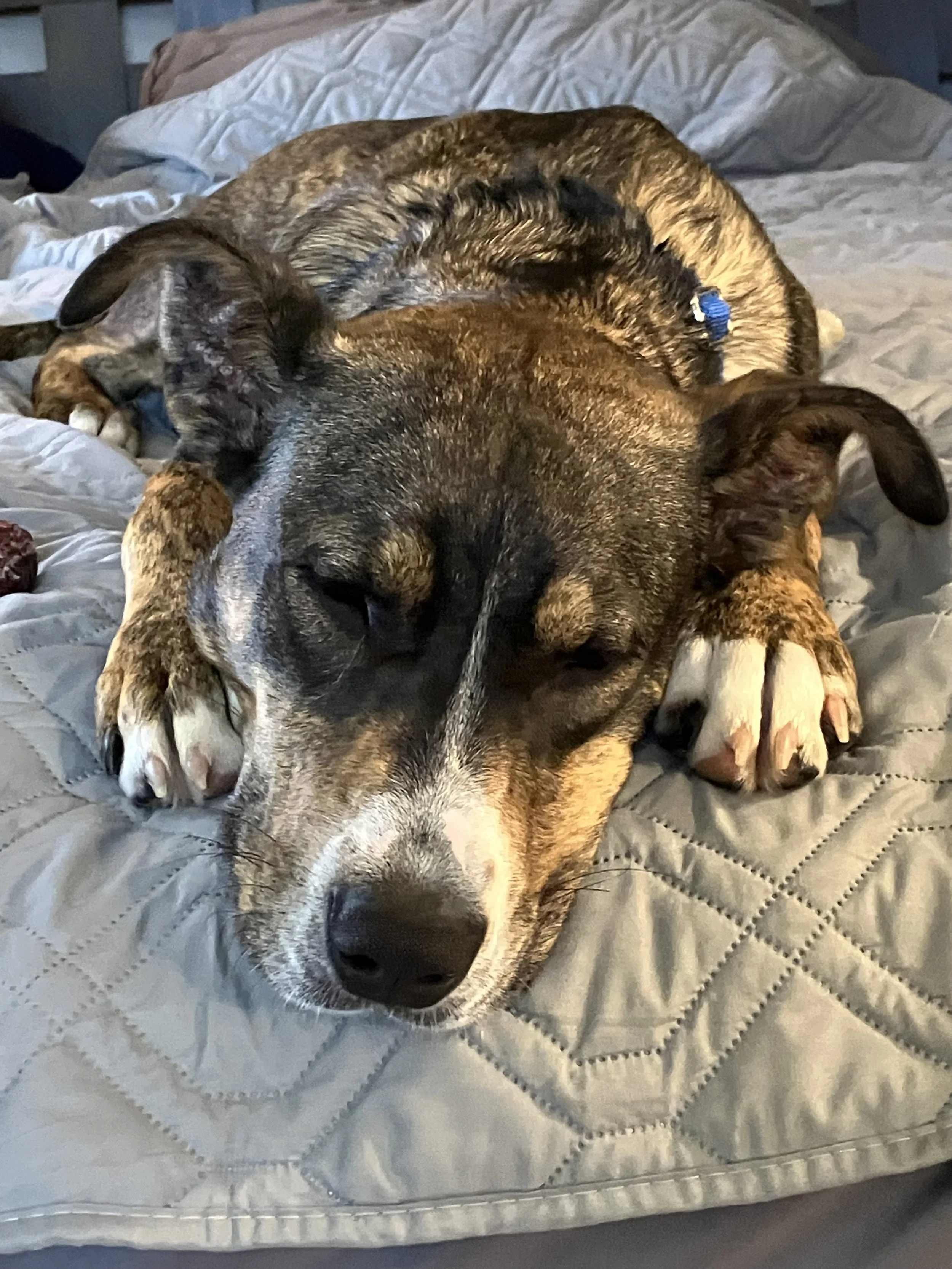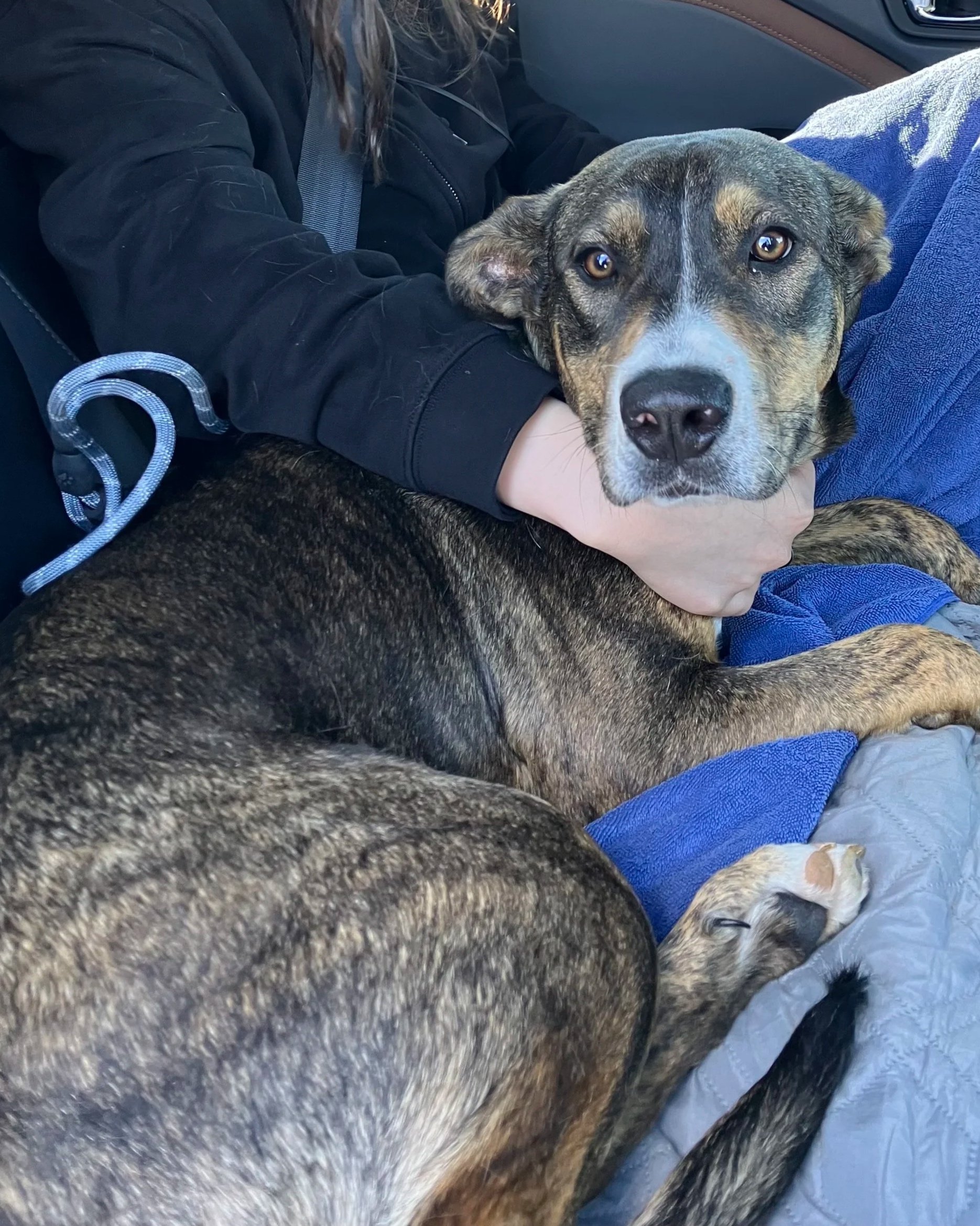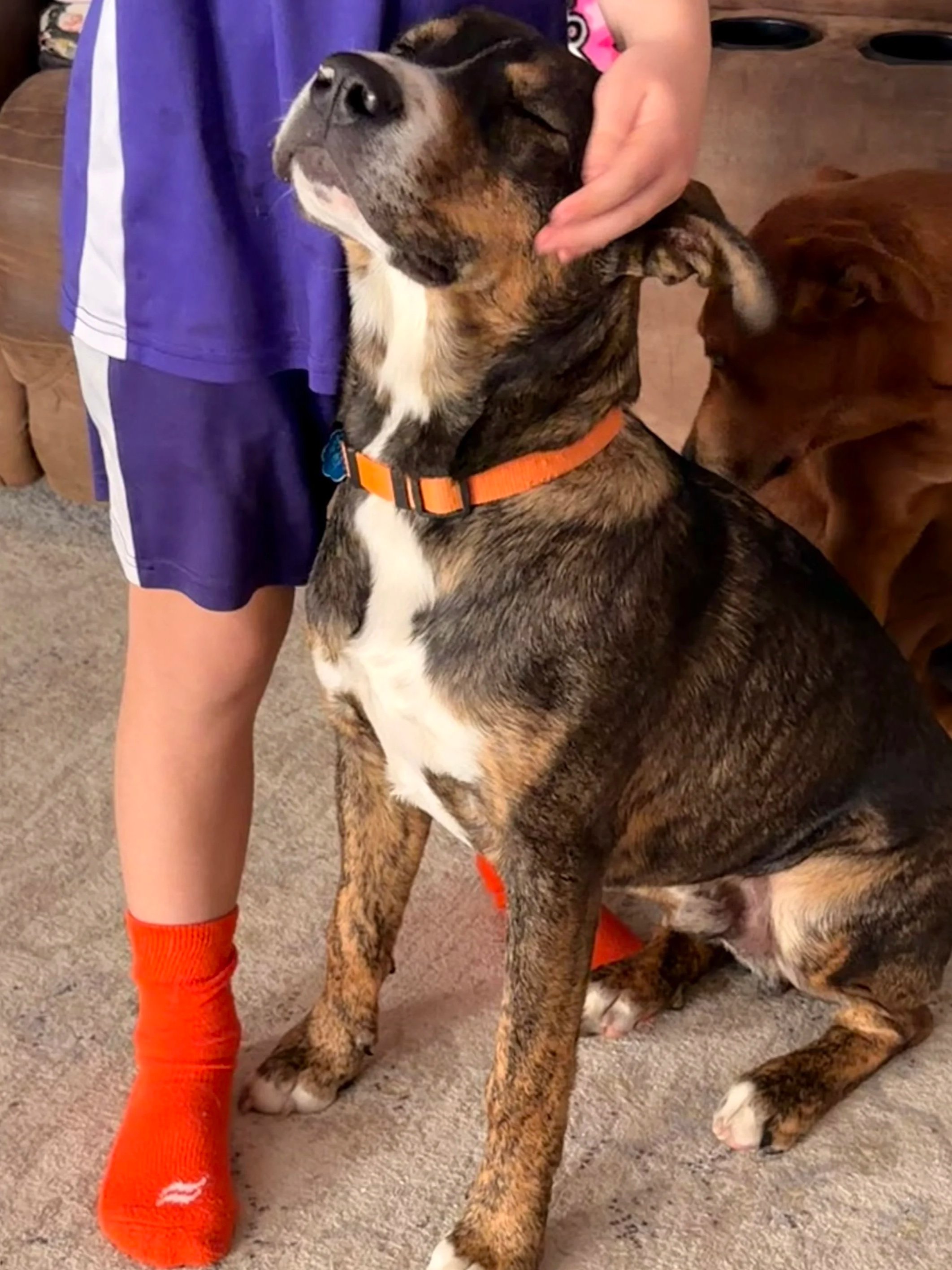 My name is S'mores. I am about 10 months old and 55 lbs. My poundage doesn't translate to the way I look! You will be surprised, I am not that big! I am a gorgeous almost painted brindle. My breed mix? Ridgeback? Cur? Hound? Terrier? We aren't totally sure but I am a handsome man. I am a very sweet and gentle dog. My most favorite thing in the world? Kids. Just like my brother Red, who was adopted recently, kiddos just make me feel good. I am the most trusting of the smaller humans at first. In my first foster home, I lived with young children and was very attached to them. In my NJ foster home, I also love my older kids. I am great with dogs too. I am submissive but once I trust, I will want to play and interact. I am good at reading the room with other animals. I won't push my limits but I am friendly. I am housebroken and crate trained; although, I have basically aged out of the crate at least at night. I would absolutely be great living with another dog friend if that is an option. If not, I could live as your one and only too. I will need a patient family that understands I may be hesitant about some new life things - trash trucks for one! I can walk well on leash but also love my fenced in backyard! That would also be ideal for me. When you meet me, you will fall in love. I am located in NJ.