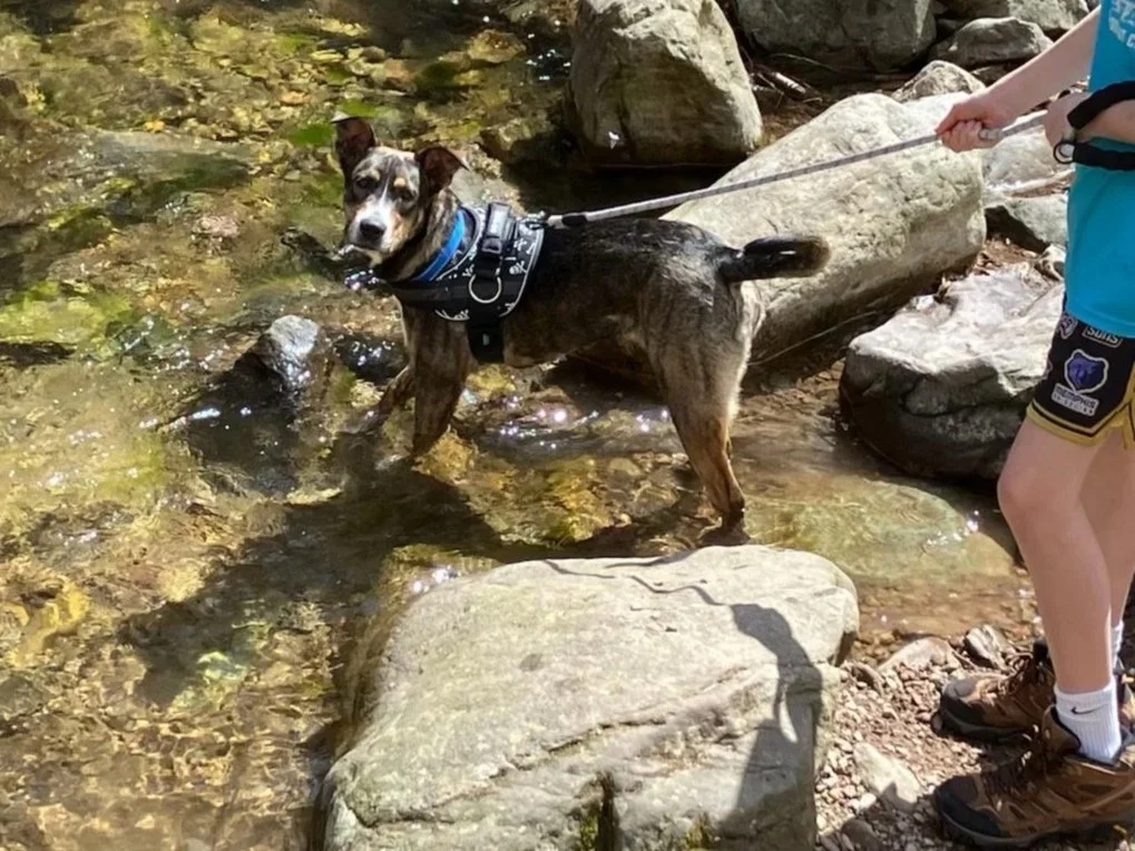 My name is S'mores. I am about 11 months old and 50 to 55 lbs. My poundage doesn't translate to the way I look! You will be surprised, I am not that big! I am also all filled out and won't get much bigger. I am a gorgeous almost painted brindle. My breed mix? Ridgeback? Cur? Hound? Terrier? We aren't totally sure but I am a handsome man. I am a very sweet and gentle dog. I am such a lover of so many things. For one, kids - any age of kids and I have experience with young ones too! I am great with dogs. I actually would prefer that my next home have a dog buddy in it. It's not that I don't adore my humans but the other canine will give me a little confidence to continue to learn about how good life can be! I can be hesitant with new sounds and sights. If I see a trash truck on a walk, I might be a little concerned but we have found that my dog friends keep me moving! I am housebroken and crate-trained; although, I have basically aged out of the crate. I will need a patient family that is willing to let me go at my own pace and provide positivity and love on the way. A fenced in yard is required; I love to romp and run in my secured area and play fetch! My leash walking is good; when I see something that gives me pause - that's when my dog buddy jumps in to let me know the walk can proceed! I am a fun and playful character. When you meet me, you will fall in love. I am located in NJ.
